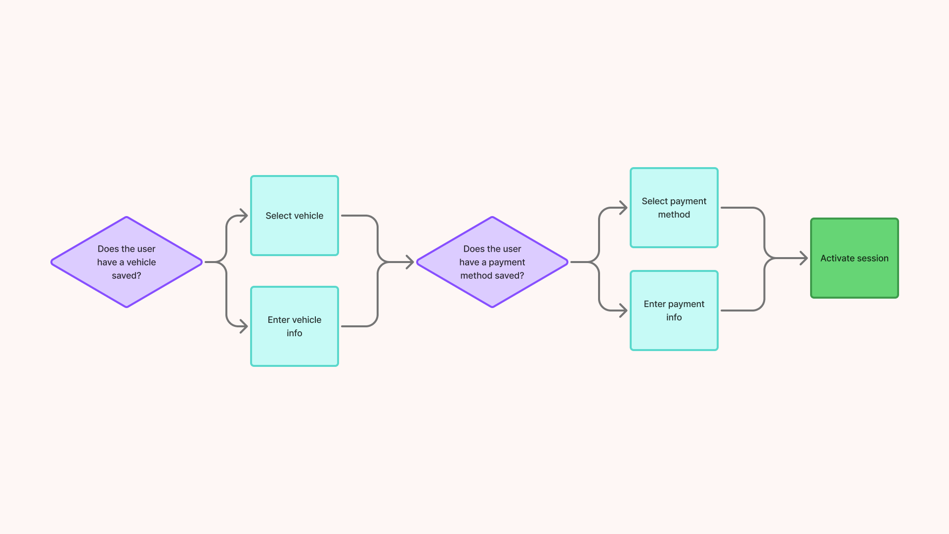 For the scope of this project, our strategy team and I decided to focus on how users enter the Express Pay flow and ensure they can leave the facility without the need of payment kiosks.