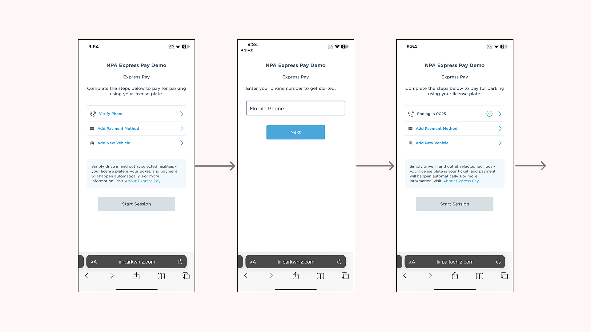 Prior to this project, the Express pay flow required users to "ping pong" between screens to enter the required information. For example, after the landing page, users need to enter their phone number. After they enter their phone, they are taken back to the landing page where they need to select another element and go to another page.