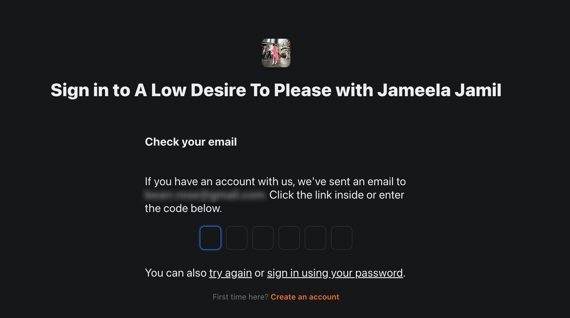Substack sends users a code through the provided email where they then either click a link in the email or enter the code here.